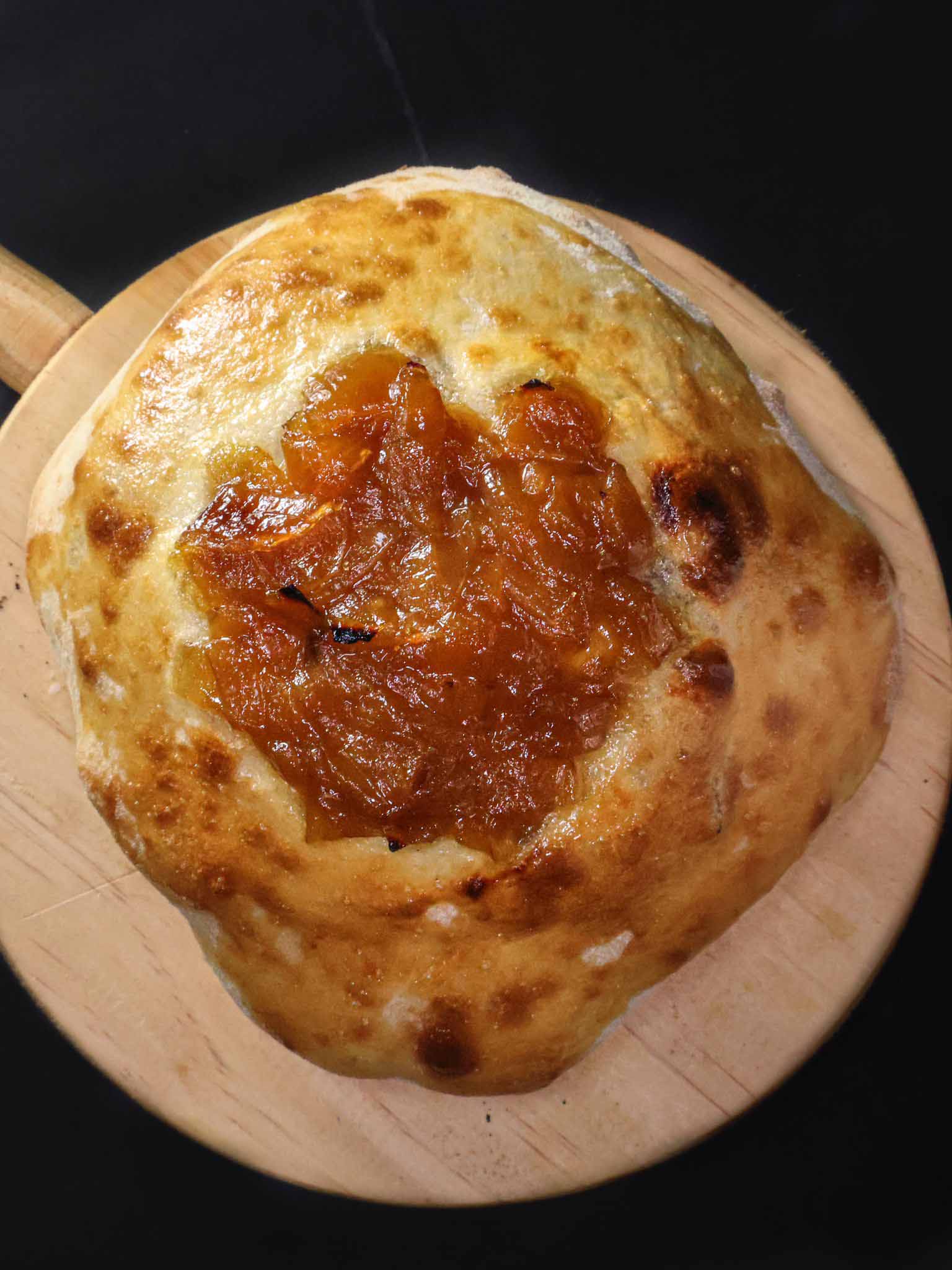 Medallón de 150g de blend de carne 100% vacuno bañada en whisky, bacón ahumado, queso mozzarella empanado y salsa cheddar en pan brioche