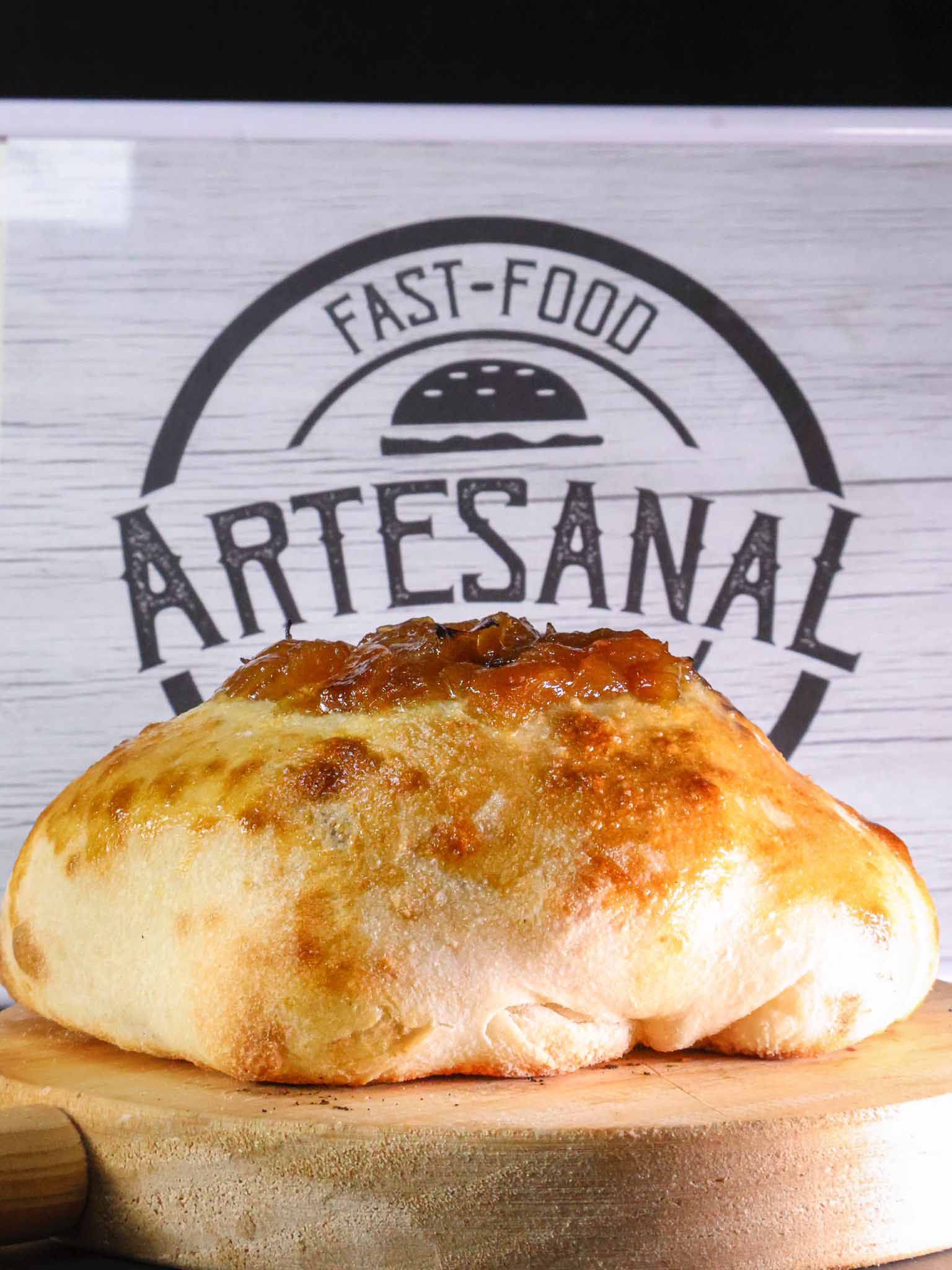Medallón de 150g de blend de carne 100% vacuno bañada en whisky, bacón ahumado, queso mozzarella empanado y salsa cheddar en pan brioche